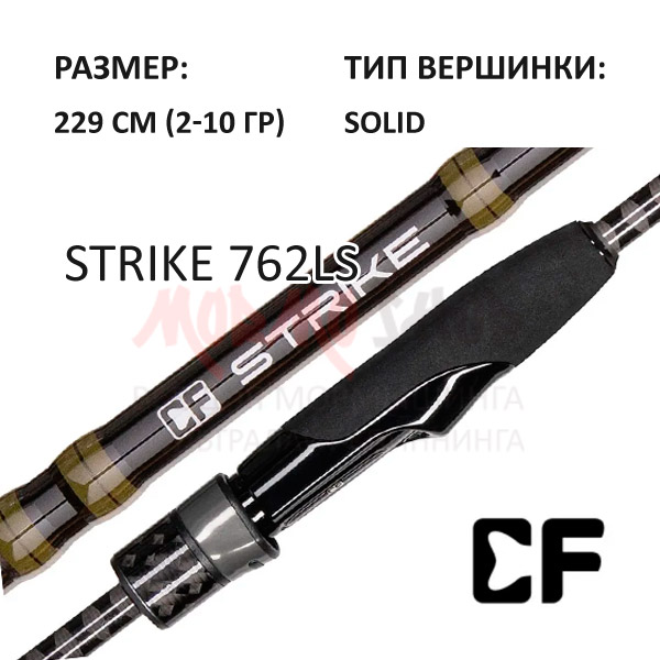 Strike 762 LS — звонкий инструмент длиной 229 см и тестом 2—10 грамм для ловли с берега и лодки, использования джига, разнесенных оснасток, блесен, воблеров минноу и кренков на равномерной проводке. Бланк создан из карбона Mitsubishi 30T со связующими нового поколения, благодаря чему спиннинг получился чувствительным, лёгким, упругим и надежным. Быстрый строй позволяет забрасывать далеко и точно, не вкладываясь в заброс: 2 грамма с тонким слагом улетают на 28 метров, а 10 грамм с виброхвостом 2.2" на впечатляющие 55.6 метров. Дальнему забросу помогают лёгкие однолапые кольца с очень тонкой вставкой SiC: шнур скользит через кольца без сопротивления, поэтому дальность и точность позволяют добрасывать до большинства интересных мест, несмотря на длину спиннинга.