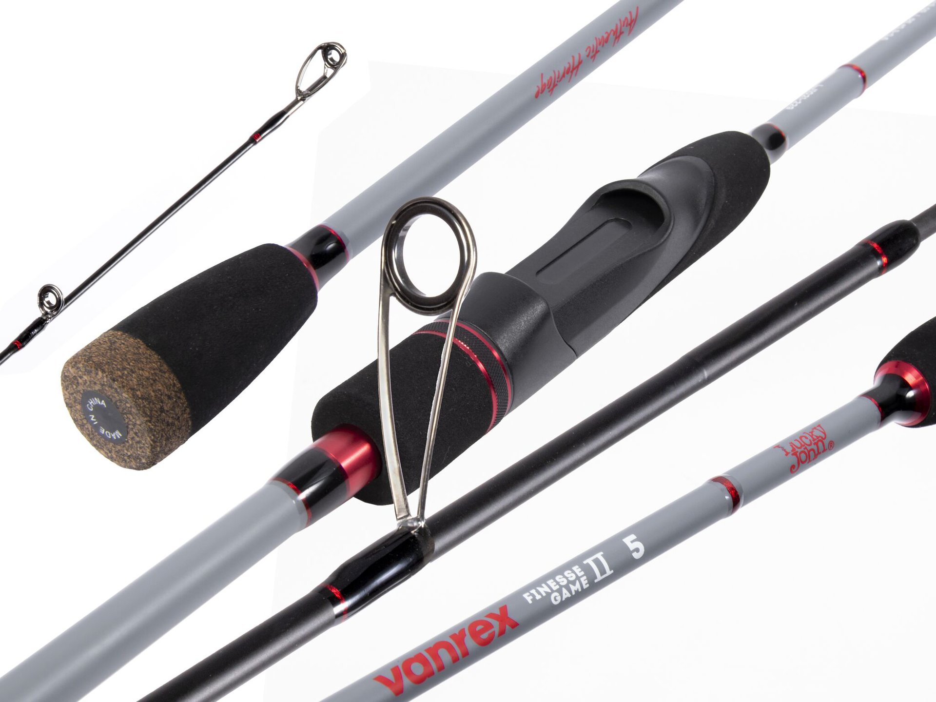 Кроме того, такое соединение отлично держит соосность, не позволяя коленам прокручиваться относительно друг друга во время рыбалки. Эргономичная разнесённая рукоять отлично лежит в руке и позволяет виртуозно анимировать используемые приманки.